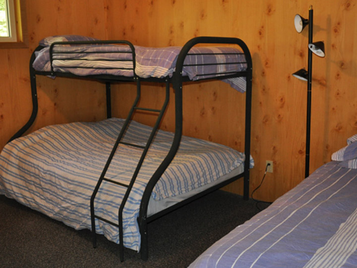 We have three 2-bedroom cottages; bedrooms each have a double bottom bunk with a single bunk above. There is a single bed in each room as well. The 2-bedroom cottage can sleep 8 people if a family or 6 people if all adults.